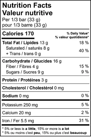 Dark Chocolate (cocoa liquor, sugar, cocoa powder, cocoa butter, butter oil, sunflower lecithin).