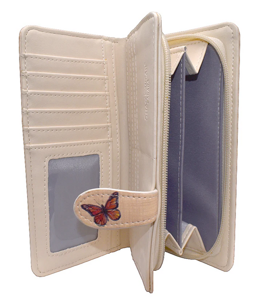 Long Wallet with Button Closure, 12 Card Slots, Zipper Compartment w/2 Sections, 2 Separate Compartments. Durable Vegan Leather. 7.5" x 3.5".