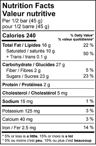 Each decadent bar has two layers of artisan chocolate - dark and white, flavoured with peppermint and topped with crushed candy cane. 180 g (Contains 2 90g Bars).