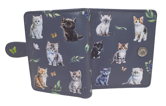 Small Wallet with Button Closure, Zipper Compartment, 5 Card Slots, Clear ID Slot, Bill Compartment. Durable Vegan Leather. 4.5" x 3.5".