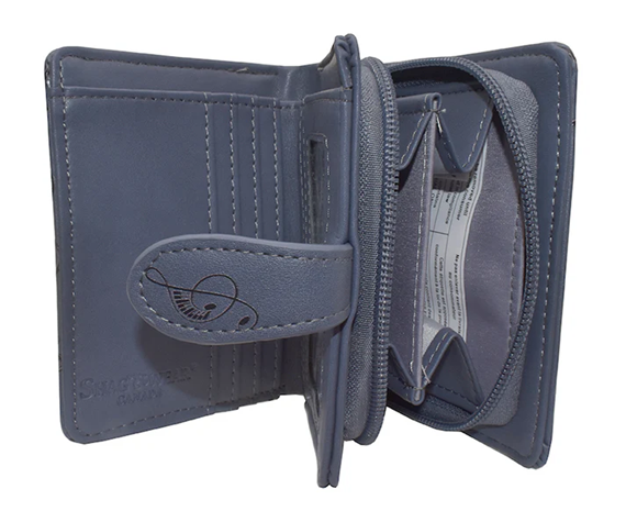 Small Wallet with Button Closure, Zipper Compartment, 5 Card Slots, Clear ID Slot, Bill Compartment. Durable Vegan Leather. 4.5" x 3.5".