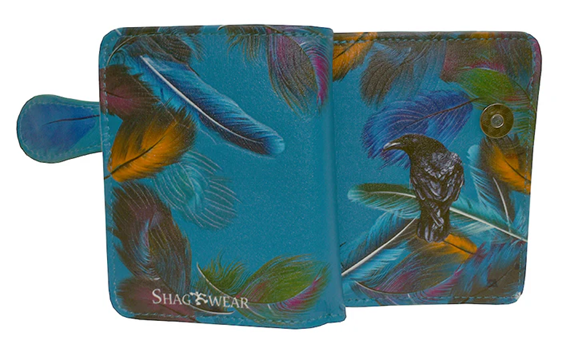 Small Zipper Wallet Raven Feather Teal